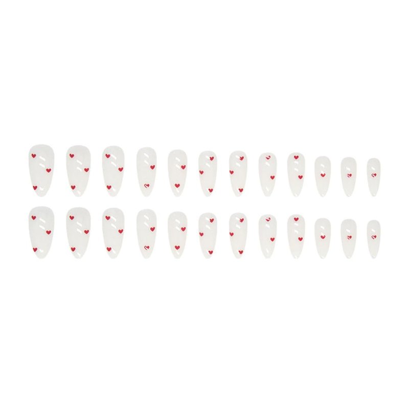 - šćWhat You Will ReceivećValentine's day press on nails contains 24 pieces of fake nails and 1 piece of tape (24 pieces in 12 different sizes), 1 nail file, 1 cuticle stick, 1 bottle of glue, 1 cleaning bag.