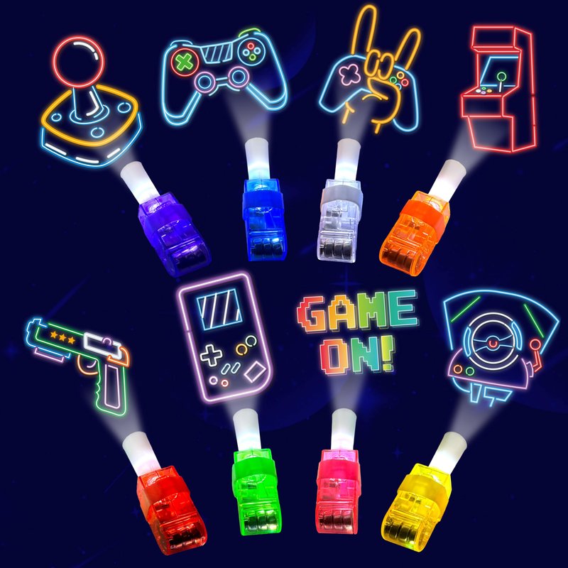 - Video Game Theme Party Favors Toys: Come with 24 finger lights in 8 designs,each for 3pcs. Just press the switch to project the Game main picture pattern anywhere. Kids will definitely love these game themed party favors toys gifts, making a huge hit at the kids' game birthday party! Enjoys your fun.