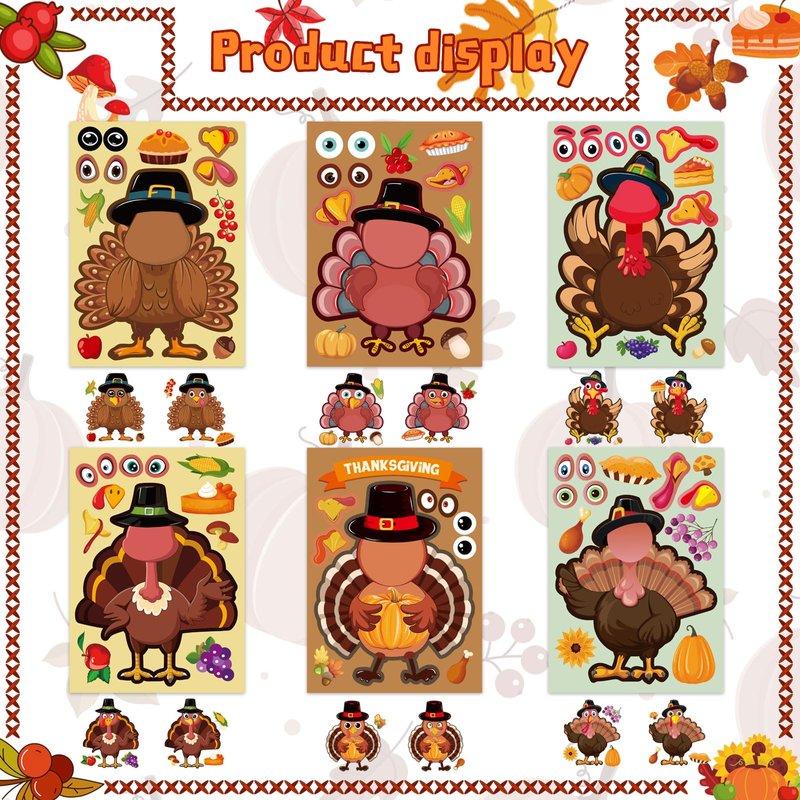 24Sheet Make-a-Turkey Stickers Thanksgiving Par...