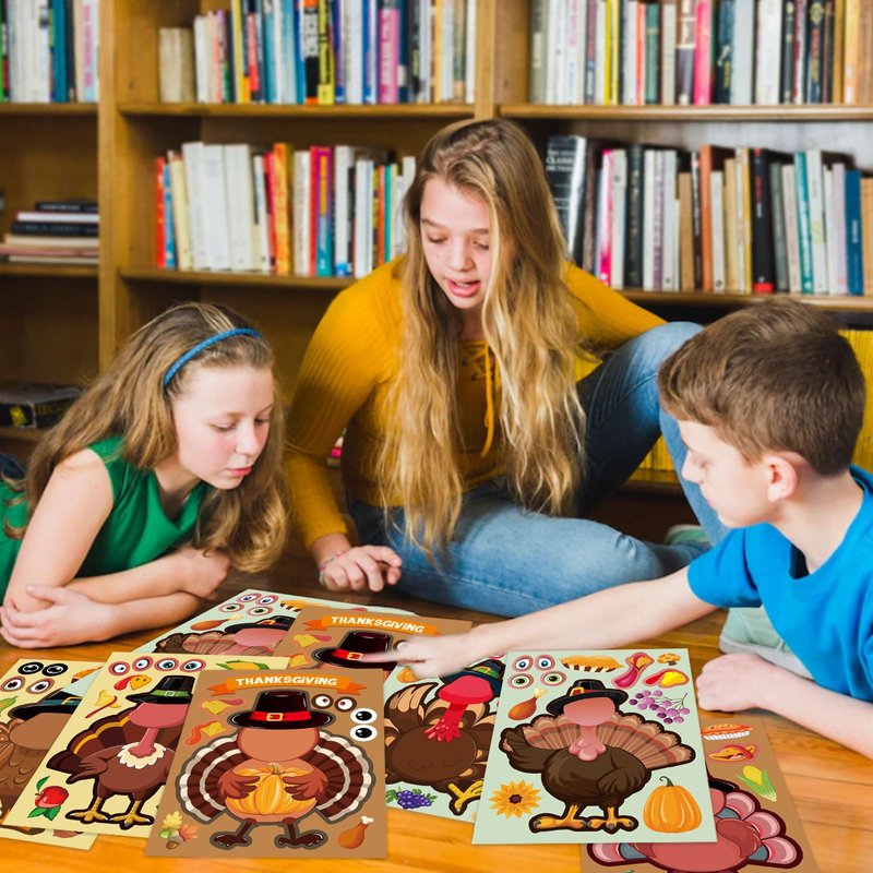 24Sheet Make-a-Turkey Stickers Thanksgiving Party Favors Supplies Stickers for Kids Turkey Games Crafts Stickers Autumn Fall Harvest Halloween Thanksgiving Decorations