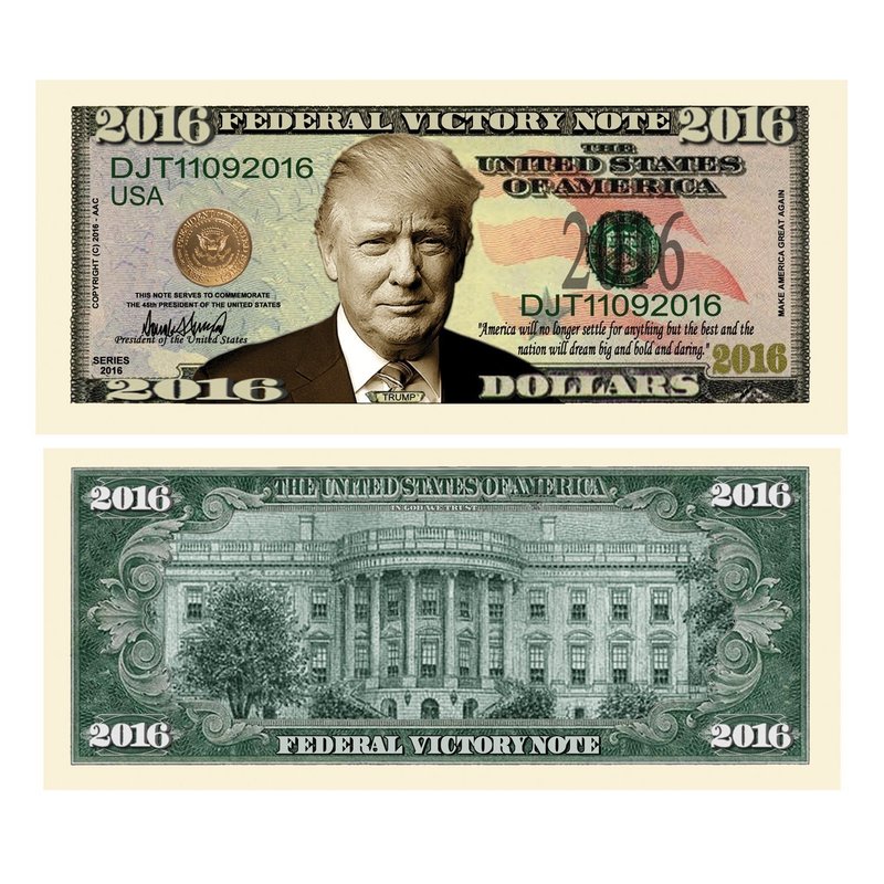 25 Donald Trump 2016 Federal Victory Limited Edition Presidential Dollar Bills with Bonus “Thanks a Million” Gift Card Set