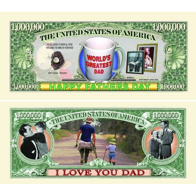 25 Father`s Day Million Dollar Bills with Bonus “Thanks a Million” Gift Card Set