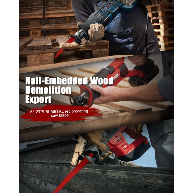 - Multifunctional:6 inch 6/12 TPI reciprocating saw blades provide superior cutting performance at both wood and nail-embedded wood, when we trim wood containing nails such as abandoned fences, no longer have to worry about nail damage to the saw blade or frequently replace different kinds of reciprocating saw blades, solving the reality we often encounter.