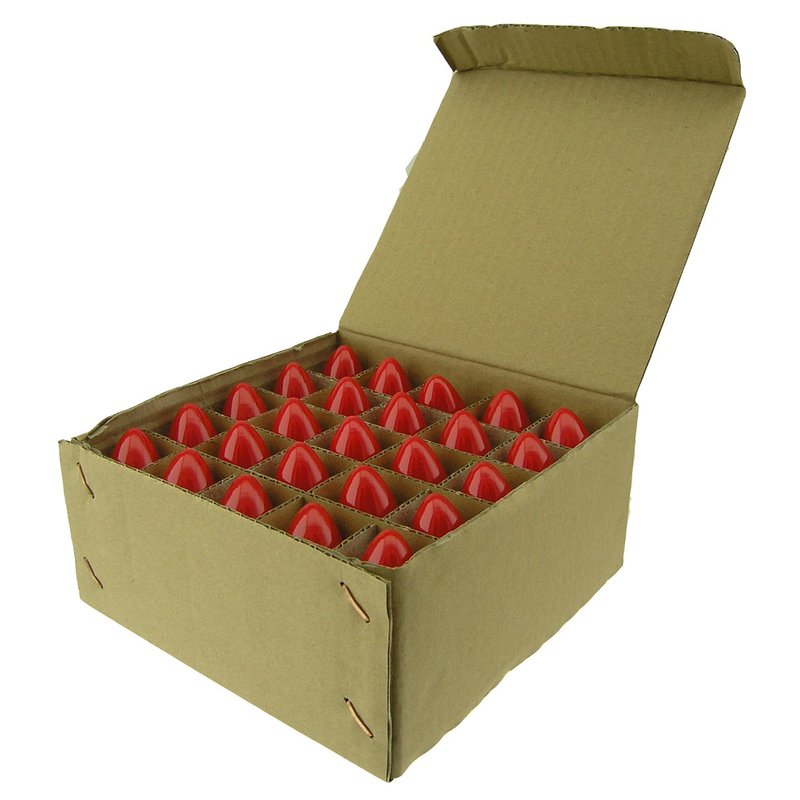 25 Pack 7 Watt C9 Ceramic Red Incandescent Light Bulb, Intermediate Base