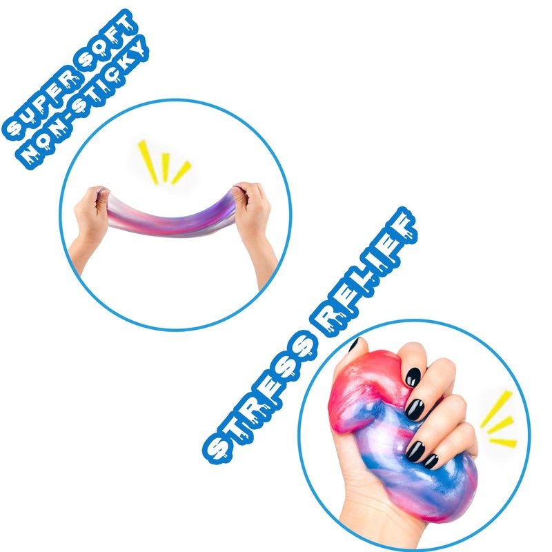 - 🌌SUPER STRETCHY SLIME:these galaxy slime are a type of slime that is super soft, stretchy and non-sticky. with very nice touch feeling and stress relief