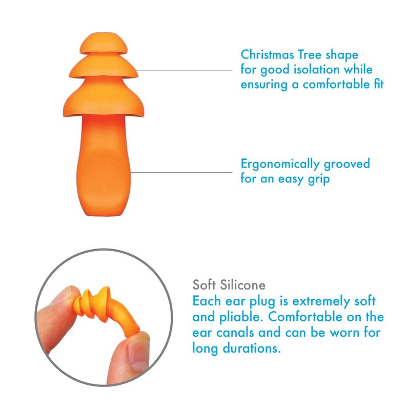 In need of some comfortable pairs of ear plugs to reduce noise levels? These corded silicone earplugs have got you covered. Available in 3 colors: Orange, Blue and Green.