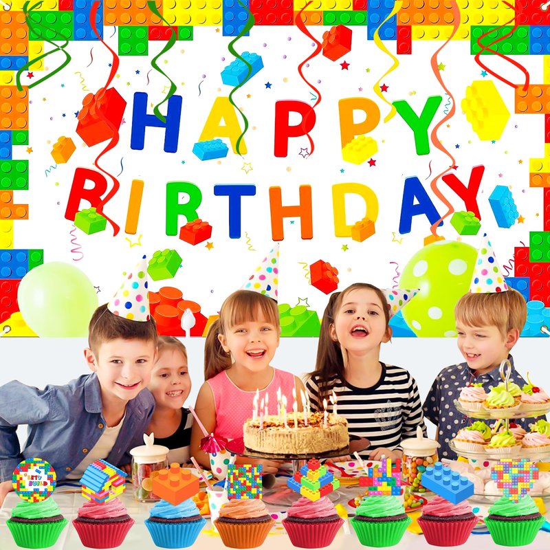 - Building Blocks Block Construction Birthday Party Decoration: The Building Blocks Block Construction party decorations are widely suitable for Building Blocks Block Construction themed parties, birthday parties for boys or girls, baby shower parties, family gathering and so on. They also can be applied as photo props to take memorable pictures with kids or friends.
