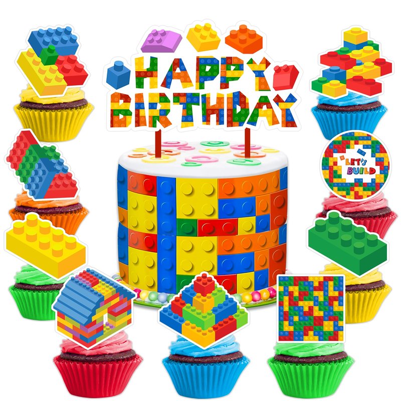- Building Blocks Block Construction Birthday Party Supplies: You will get 24 pieces of Building Blocks Block Construction theme party cupcake topper and 1 pieces Cake Topper of different Building Blocks Block Construction themed. There are Building Blocks Block Construction design, and etc. All kinds of designs and colors will bring more fun to your party. Believe me, the children are very interested and will fall in love with interesting cake topper.