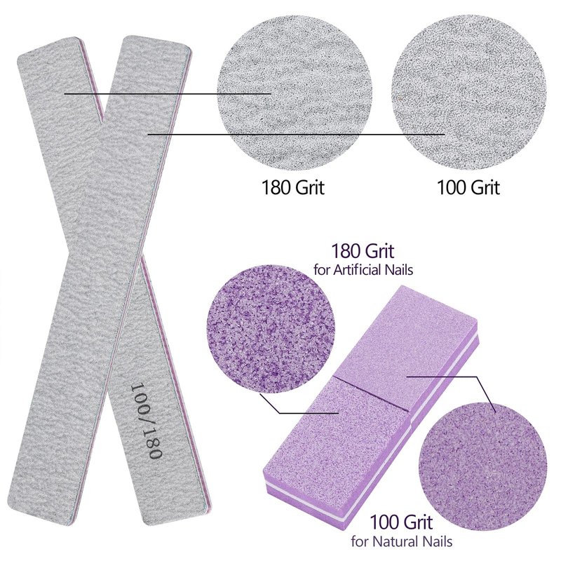 - 100/180 Grit Nail Files - Double sides have Different Functions, file and rough up the hard fingernails and toe nails in 100 grit, and use 180 grit smooth up your nail edge
