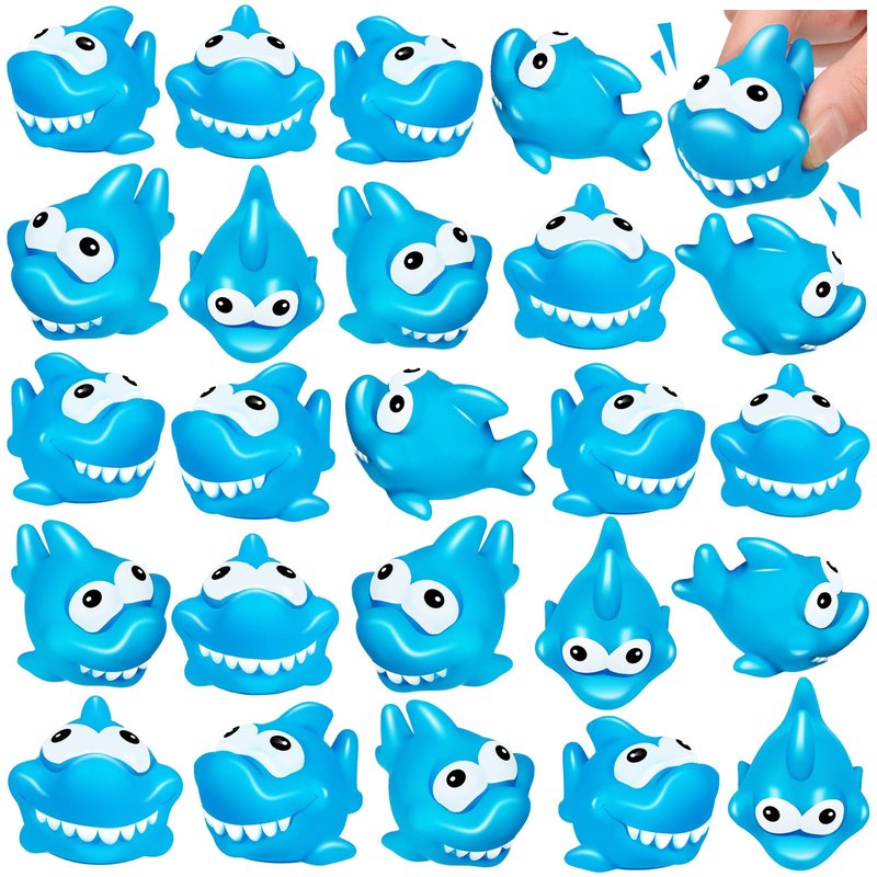 25 Pcs Rubber Sharks for Kids, Bulk Squirting Shark Bath Toys Cute Small Squeak Sharks Party Favors Summer Bathtub Toy for Birthday Shower Classroom Pool Party Favors