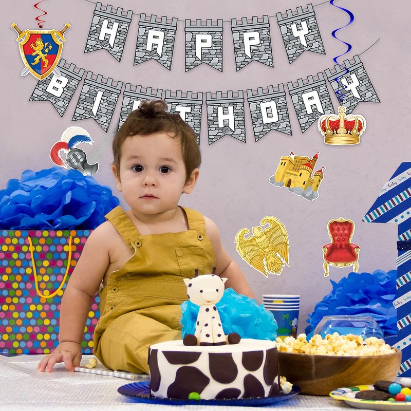 - Medieval theme: these medieval whirls are mainly in gray, red, yellow and blue color, giving you a cold weapon era feeling, which includes the realistic and cool pattern design, such as castle, lion, shield, knight, bird, armour, adding classic sense for your medieval theme party