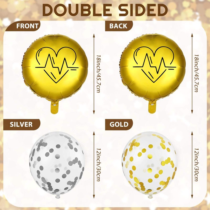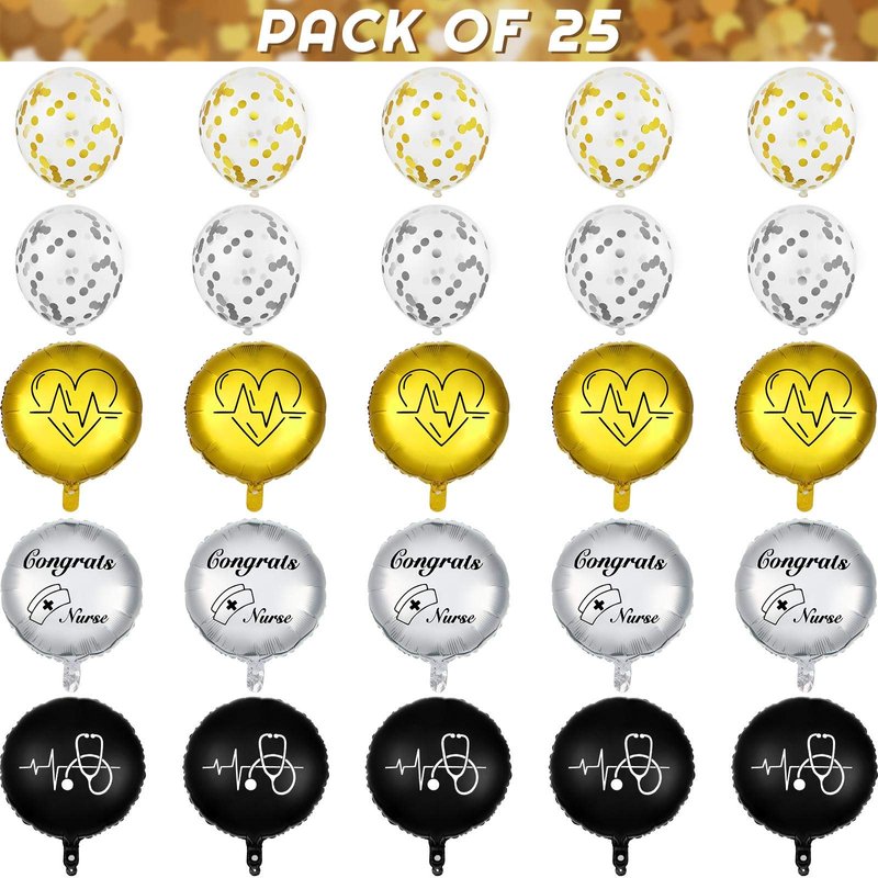 - Nurse Graduation Decorations: Foil and latex balloons in gold and silver colors for a festive celebration.