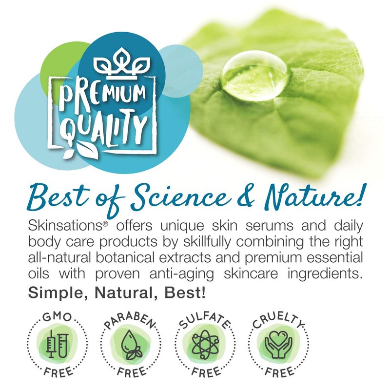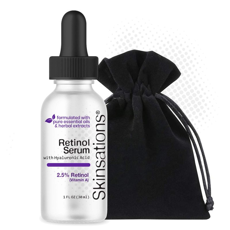 - Softens and heals skin. Helps minimize sun damage. We invite you to try Skinsations retinol serum shipped to you gift-ready in elegant black velour drawstring bag