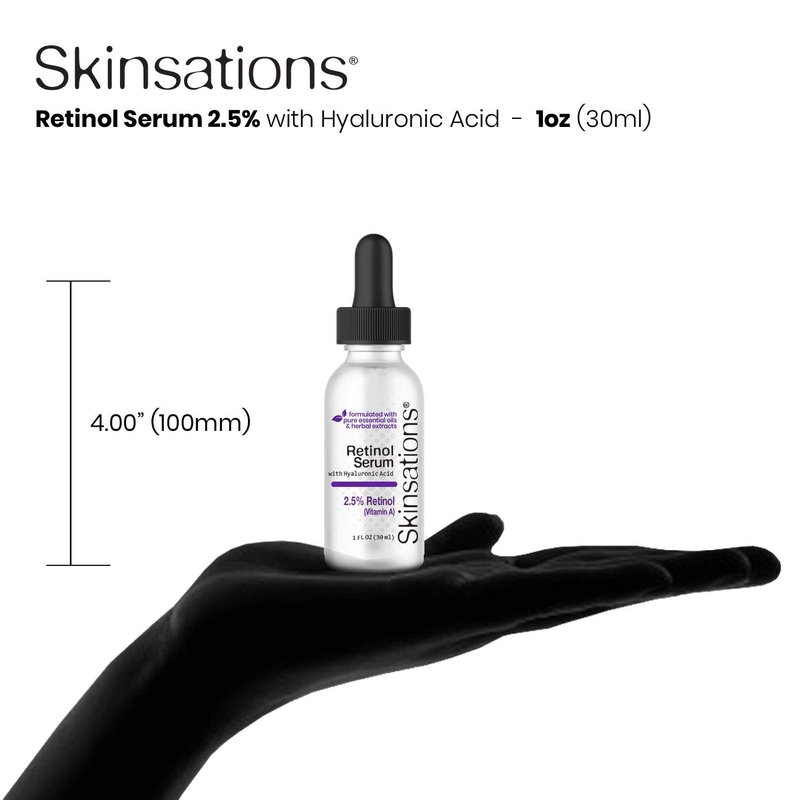 2.5% Retinol Serum with Hyaluronic Acid - Skinsations | Natural Daily Moisturizer with Organic Botanical Extracts | Aloe, Vitamin E, Green Tea, Witch Hazel