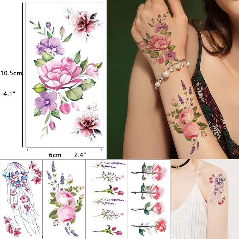 - CUSTOM PERSONALITY - 25 Pack Ocean Animals Flowers temporary tattoo kit in beautiful package, special designs. The size of tattoo paper is 6cm*10.5cm / 2.3"*4.1".