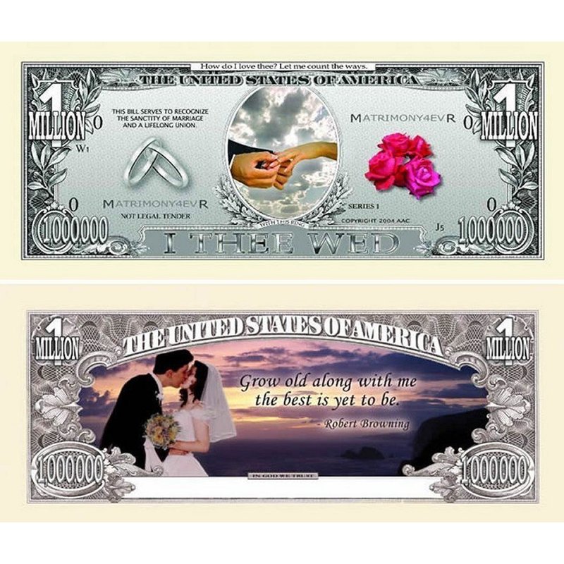 25 Wedding Million Dollar Bills with Bonus “Thanks a Million” Gift Card Set