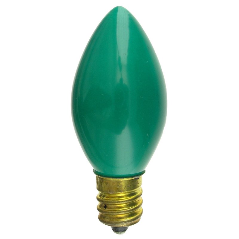 - 25 Pack of Ceramic Green 7 Watt C7 130 Volt Light Bulbs With an candelabra (E12) Base