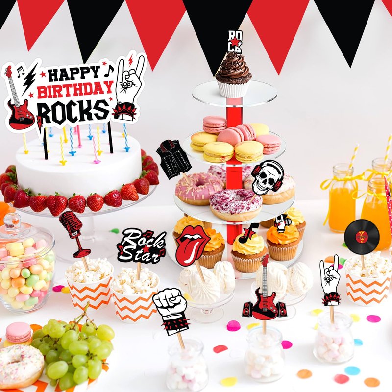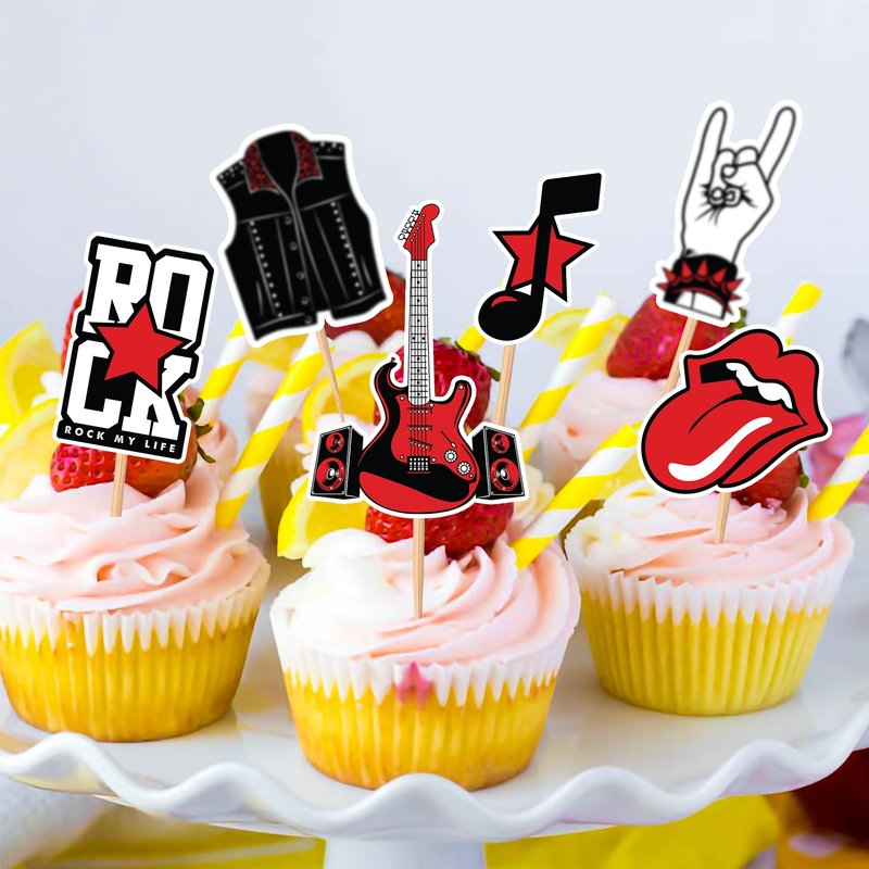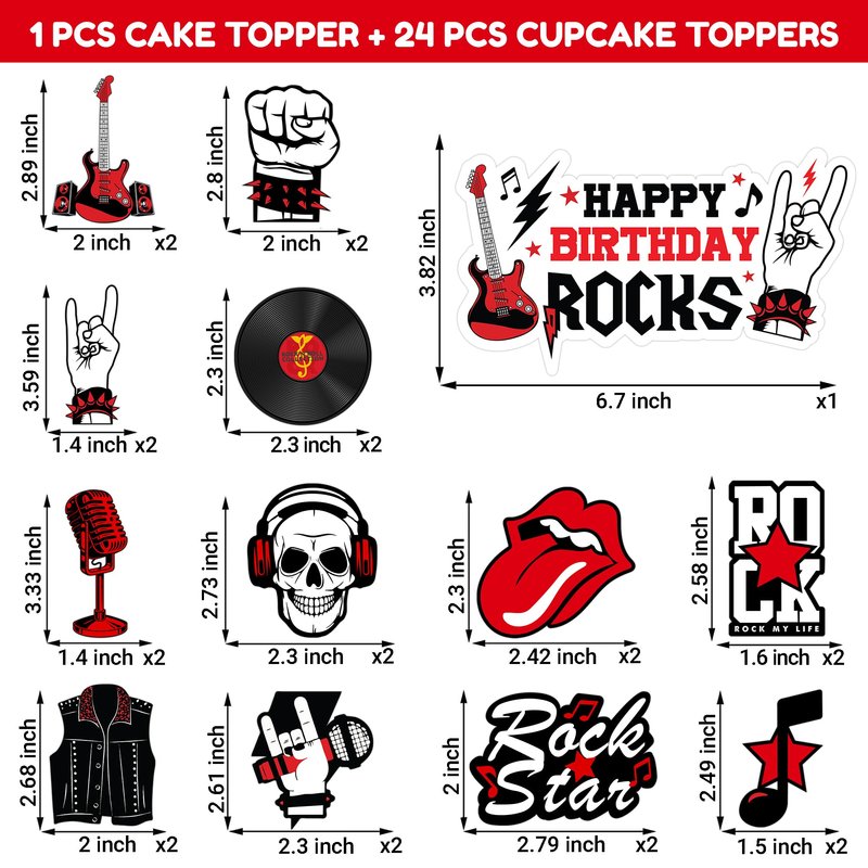- Pattern Rich: You will get 24 pieces of Born To Rock N And Roll Rocks Music Notes 50s theme party cupcake topper and 1 pieces Cake Topper of different Born To Rock N And Roll Rocks Music Notes 50s themed. There are Born To Rock N And Roll Rocks Music Notes 50s design, and etc. All kinds of designs and colors will bring more fun to your party. Believe me, the children are very interested and will fall in love with interesting cake topper.
