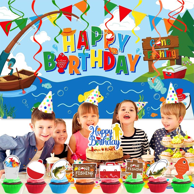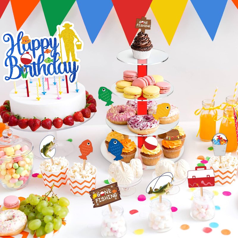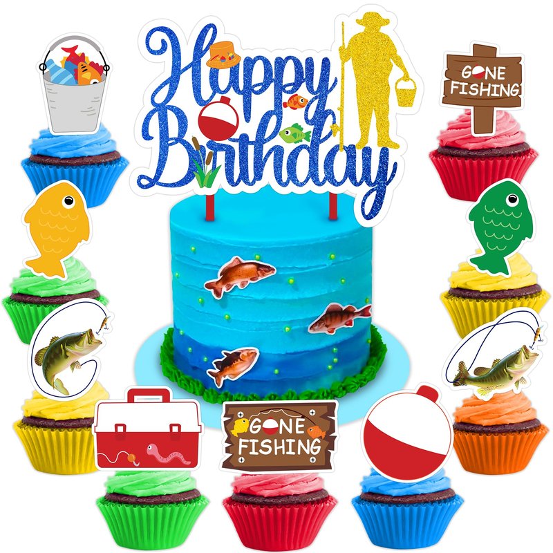 - š„³š£ćCREATE A FOCAL POINT FOR THE GONE FISHING PARTY DECORATIONSć With a variety of vibrant designs and colors, your party will come to life with joy and energy. Trust us, the kids will be captivated and enchanted by these charming cake toppers.