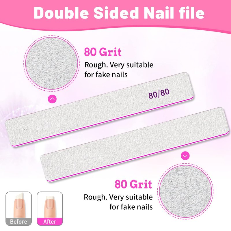 - ✅✅Nail Files For Acrylic Nails: 80/80 grit nail files are the coarse and sharpest file, they are specially use to shape false nails such as acrylic nails, gel nails, dip powder nails, poly extension nails and false tips. But not suitable for natural nails. Besides, it is coarse enough to file away the excess dead skin or calluses on one's foot or pet nail.