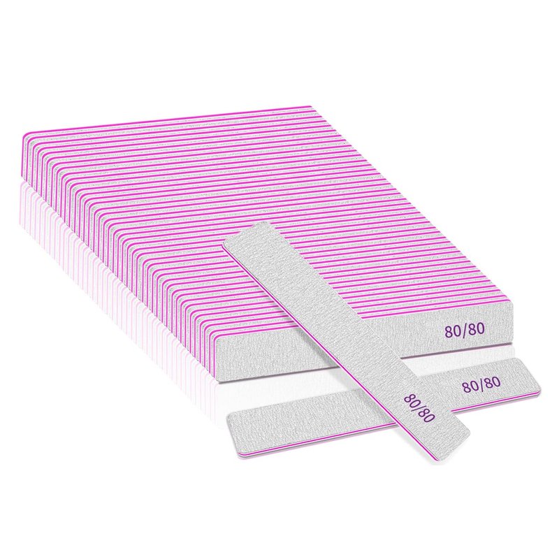 - ✅✅80/80 Nail File for Acrylic Nail: 25 pack nail files are designed with rectangle shape, made with top quality triple adhesive tape layered with pink center. and emery board materials, the edges do not cut the skin, they are not easy to bend and crumble as you file.