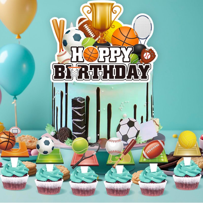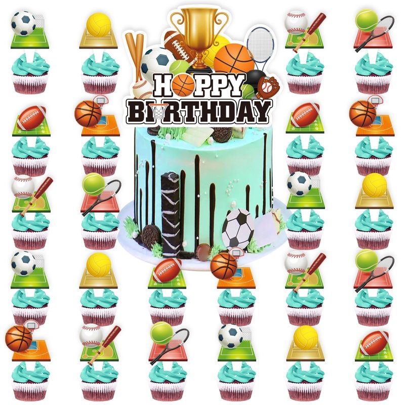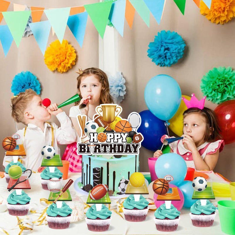 25pcs Sports Birthday Party Supplies, Football Basketball Football volleyball Cupcake Toppers Decoration, Sports Ball Game Theme Happy Birthday Cupcake Toppers Men Boys Decorations (Sports)