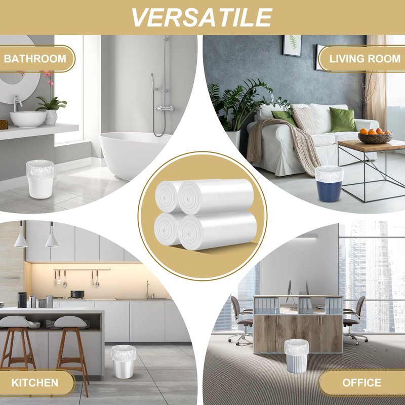 - 【CLEAR WHITE TRASH BAGS 2.6 GALLON】Clear white 2.6 gallon small bathroom garbage bags are perfect for garbage sorting without complication. These 2.6 gallon garbage bags for bathroom can are see-through but tough enough to handle your daily chores. These small waste basket liners 2.6 gallon have been a big hit as they definitely add a cozy and simple sparkle to your home sweet home.
