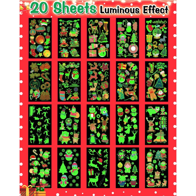 - 260 STYLES CHRISTMAS TATTOOS: 20 sheets luminous Christmas tattoos include Christmas gnome, snowman, reindeer, elf, bells, Christmas tree, and gingerbread man and other Christmas-related elements, totaling 260 styles to meet your Christmas decoration needs. These Christmas temporary tattoos that glow in the dark will make you the focal point of the party.