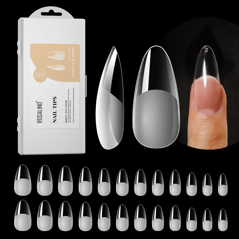 - ✿ Professional Acrylic Nail Tips Set:Want to lengthen your nails quickly and easily?ROSALIND Fake nail tips are specially designed for women's nail extensions.It has a full cover half matte texture and is a medium almond type.It can be used together with gel nail,crystal powder,dip powder,etc.,to create a nail salon effect conveniently and quickly.With just a glass of water, everyone can be a manicurist.