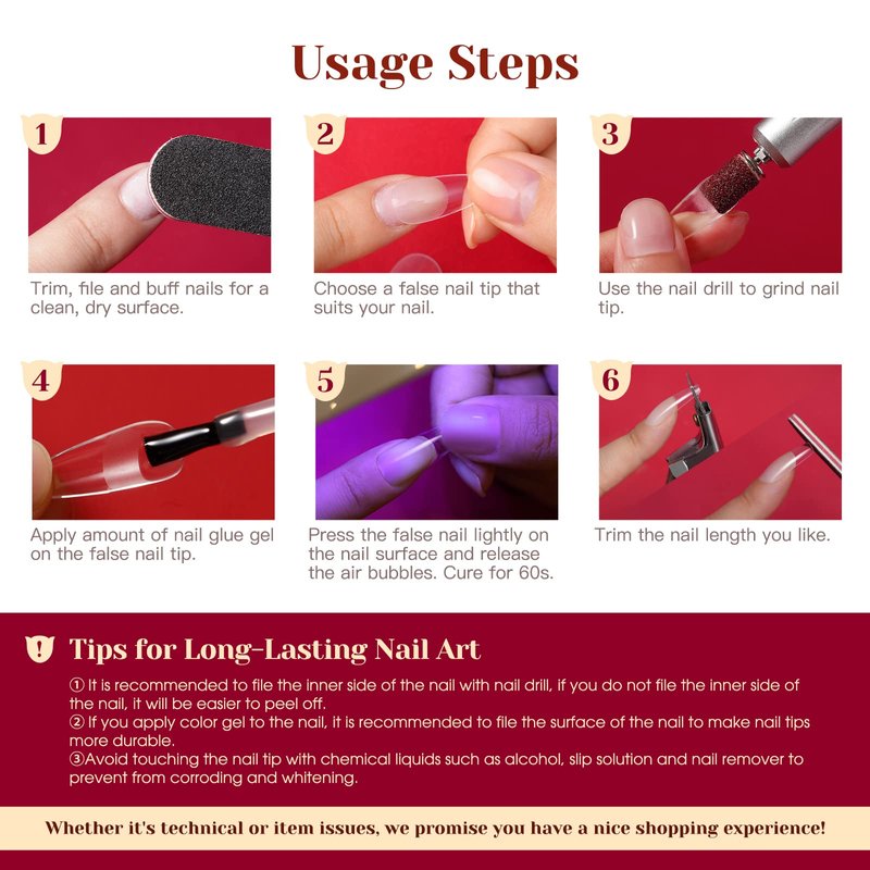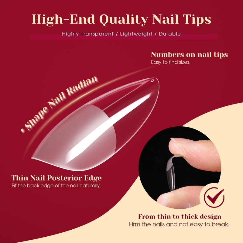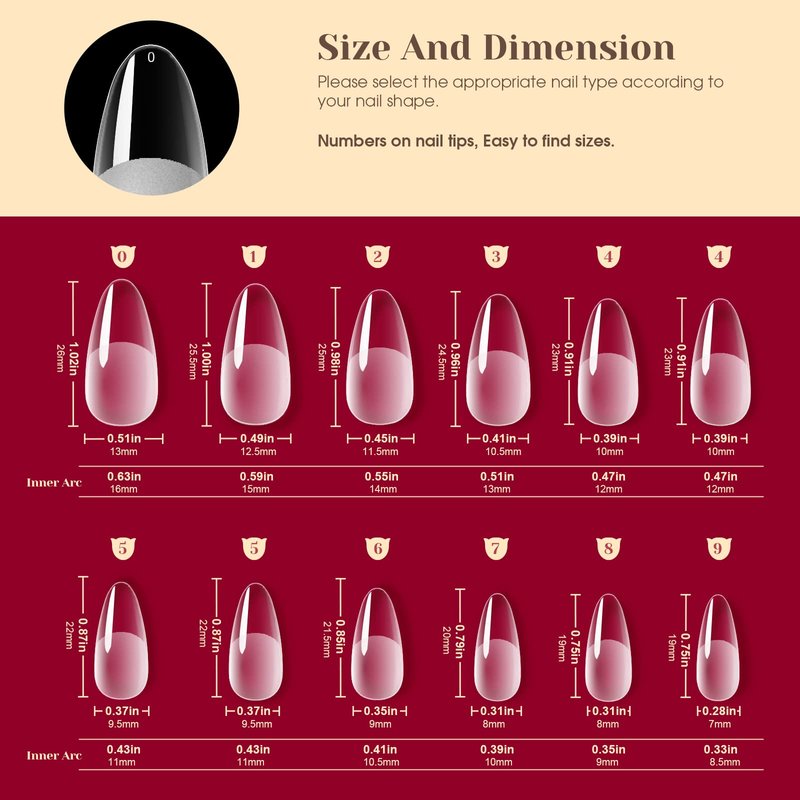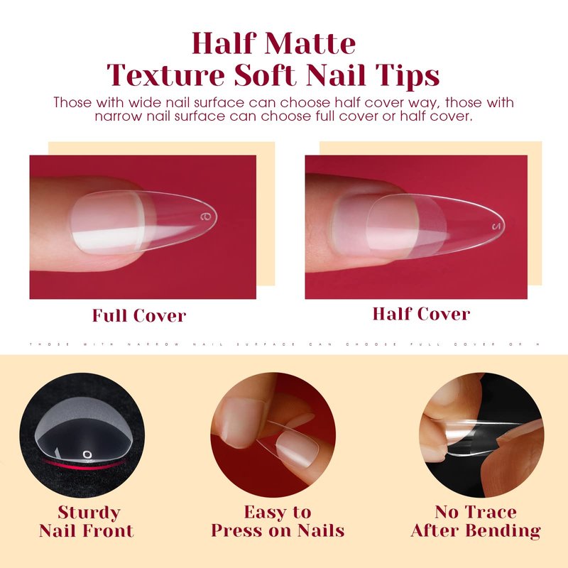 - ✿ Easy to Use:Half matte medium almond false nail tips are designed from thin to thick,fit the nails naturally,easy to trim the nails,apply the nails,keep the color well without separation and exposure,and show your nail shape naturally.According to the correct use method,it only takes a few minutes to extend your nails,and at the same time maintain the nail extension effect long lasting for 28+ days.