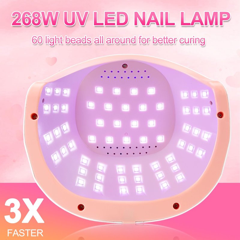 268W UV Nail Lamp, UV Light for Gel Nails with 60pcs Professional Nail Light 4 Timer Setting Nail Dryer for Home Salon Nail Art Tools