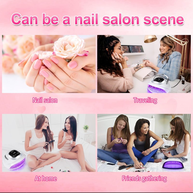 • Curing Most Nail Polishes: The UV nail lamp has an uninterrupted service life of up to 5,000 hours, but in order to prolong the service life of the nail machine, it is recommended to let the nail machine rest after two hours of use before continuing to use it; The nail lamp is compatible with virtually all types of gel nail polish, including base coats, top coats, UV gels, construction gels, gemstone gels, polymer gels, and colored polishes to provide professional results; Also the use of thin and multiple coats can make a perfect manicure. Warm tips: our led nail lamp is not suitable for regular nail polish