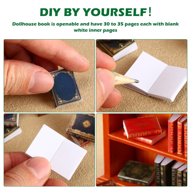 - Miniatures Dollhouse Accessories: 1: 12 scale Miniatures can make the dollhouse look very attractive and stylish; The package includes 27 pieces of miniature books and 1 piece of mini bookshelf; Dollhouse books are able to open and have 30 to 35 pages for each with blank white inner pages, and you can use your imagination to write it