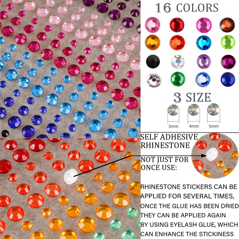2752 Pcs Self Adhesive Rhinestones for Makeup 16 Sheets 16 Colors Eye Nail Gems Face Jewels Stick on, DIY Craft Nail Art Makeup hair Rave Festival Accessories Costume for Women