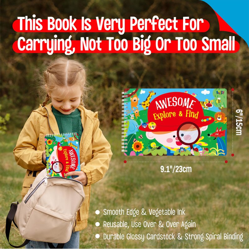 28 Reusable Activities: Our dry erase activity book is double-sided printed, including 28 different themes searching games, such as farm, ocean, universe, park, forest, camping, market, city, aquarium, etc. get these diverting games once for all in 1 pad. Different searching game choices wait for you and your children, allowing you to enjoy hours of fun while bored.