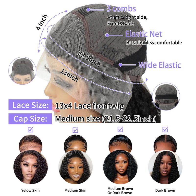 • 13X4 Lace Front Wigs Human Hair Advantage: Glueless Wigs Human Hair Pre Plucked with Natural Hairline, Soft and Durable with Invisible Bleached Knots Match All Skin Color Well, Can Be Straightened, Curled, Bleached, Dyed and Styled as You Like. No Itch, No smell, No shedding, Tangle Free.