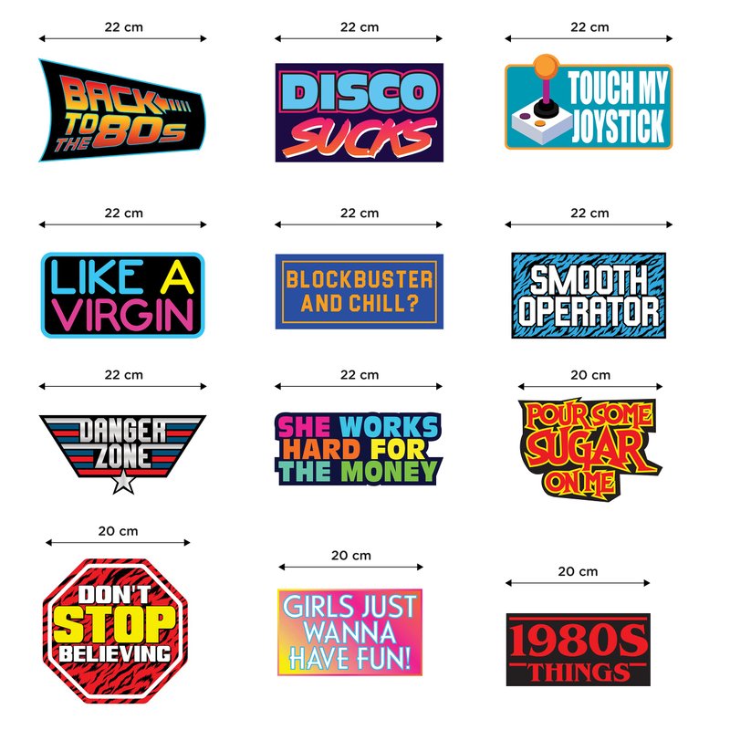 - QUALITY: The beautiful, high quality printed artwork will catch the attention of your loved ones. All the gold is accented with glitter. Our 80s photo props are sturdy but not heavy and meant to be reused.