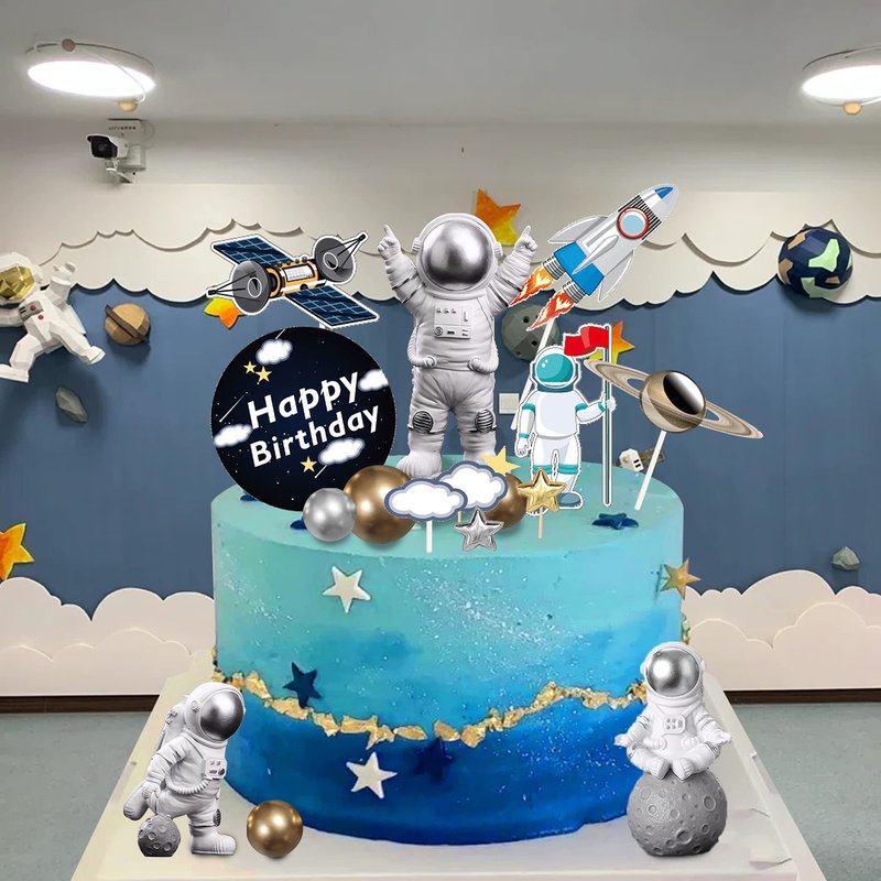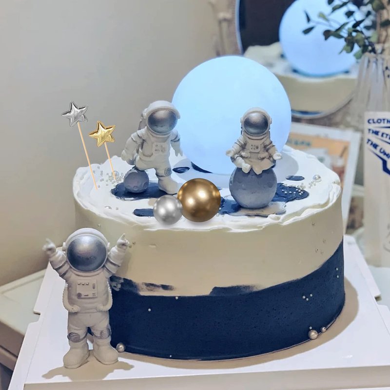 - Package Include: 3pcs astronaut figures in different poses, set of 6 space theme cake toppers,7pcs gold and 6pcs sliver balls,6pcs star decorations.