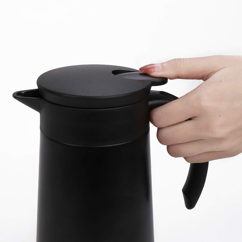 - ♚SINGLE HAND POURING, USER FRIENDLY: Pour spout opens easily when press the push button, making one-handed pouring of this thermal pot simple. It's safe to touch the coffee flask exterior body either it is a hot or cold beverage inside as the temperature is locked in and the carafe body stays cool.