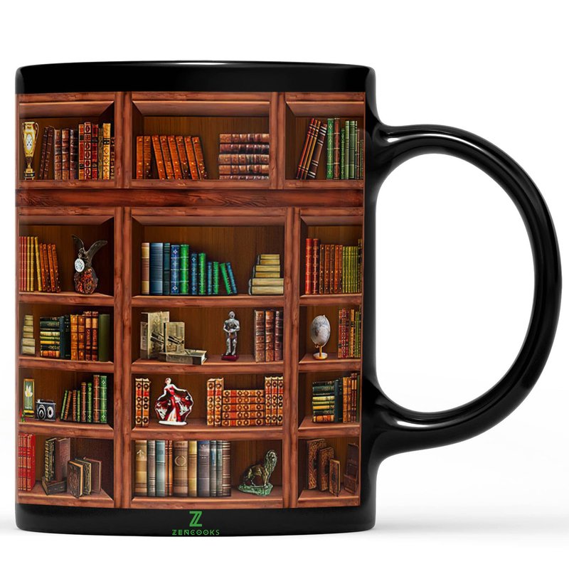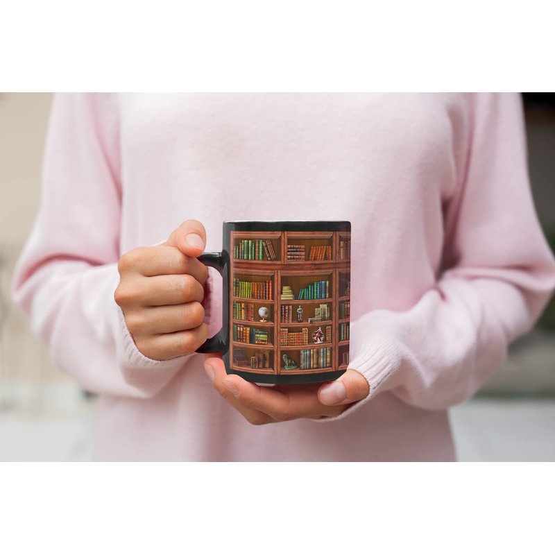 2IMT Library Bookshelf Mug Gifts For Book Lovers Women - Library Coffee Mug Book Coffee Mug Book Mug Book Club Cup Bookish Items Bookworm Mug Librarian Book Lovers Gifts for Readers Writer Black 11oz