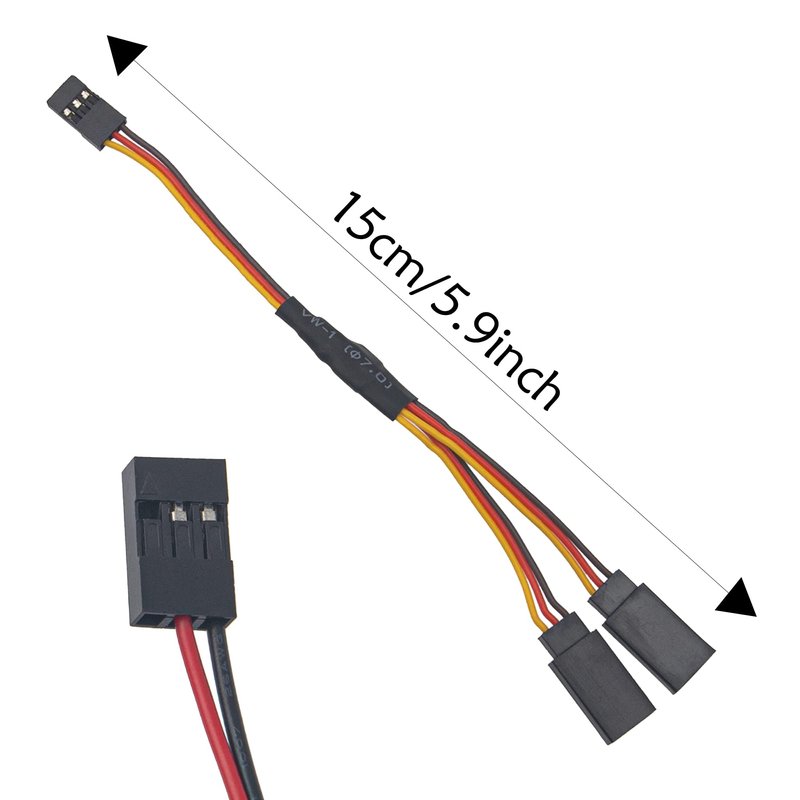 Come with 15mm/ 5.9" 1Pcs JR Male to 2 Female Y cable.
