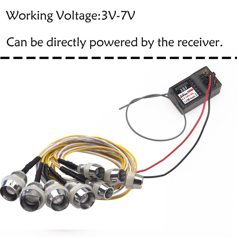 - 3. Convenient to use: Voltage: 3V-7V;No separate battery required, this 8LED RC crawler lights can be directly powered by the receiver,super convenient to operate.Make sure you have the spare receiver port.