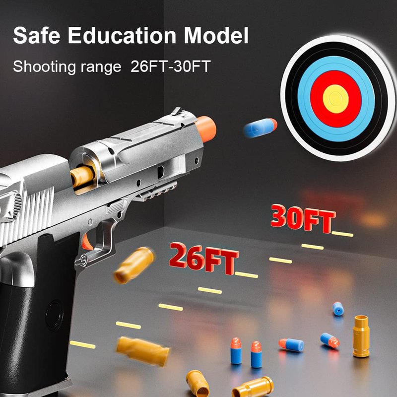 2Pack M1911 EVA Soft Foam Ejection Toy Blaster, Shooting with Foam Darts, Shooting Games, Backyard Fun and Outdoor Games, Education Toy Model for Boys Girls Halloween Christmas Ages 8+ (Black+Silvery)