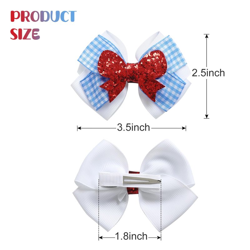 2PC Blue White Gingham Hair Bow Clips 3.5 Inch Checker Pigtail Bows Wizard Halloween Costume Accessories for Dorothy