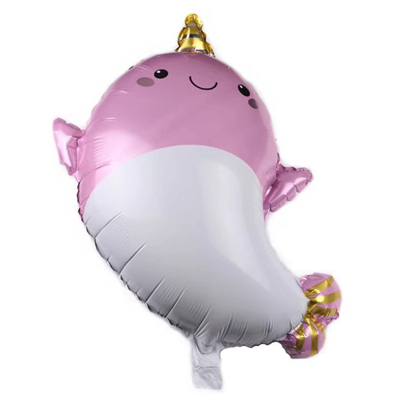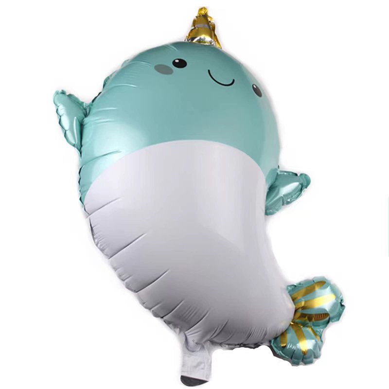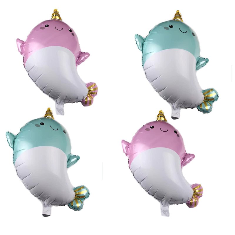 2PCS 28 Inch Giant Happy Narwhal Shape Foil Mylar Balloon for Kids Birthday Party Decorations Baby Showers Party Supplies