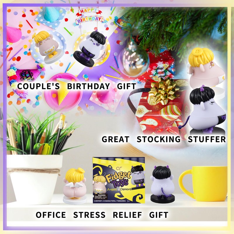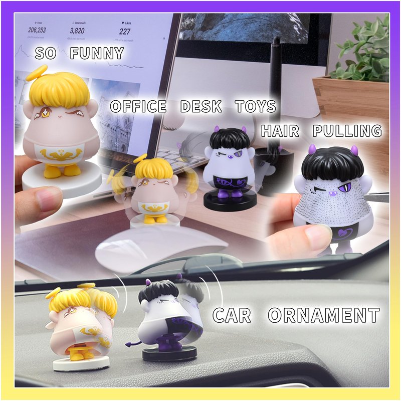 2PCS Angels and Demons Hair Plucking Fidget Toys,Shaking Bobblehead Dashboard Car Decor Car Accessories,Stress Relief Picking Toys as Halloween Party Favors Valentines Christmas Novelty Gifts