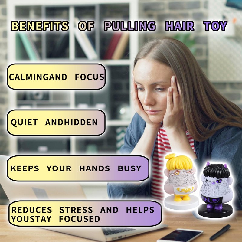 This is a good fight toy if you are in ten habit of picking your scalp. A stress relieving toy that can pull out hair, as well as a spring rocking music desktop ornament and car ornament