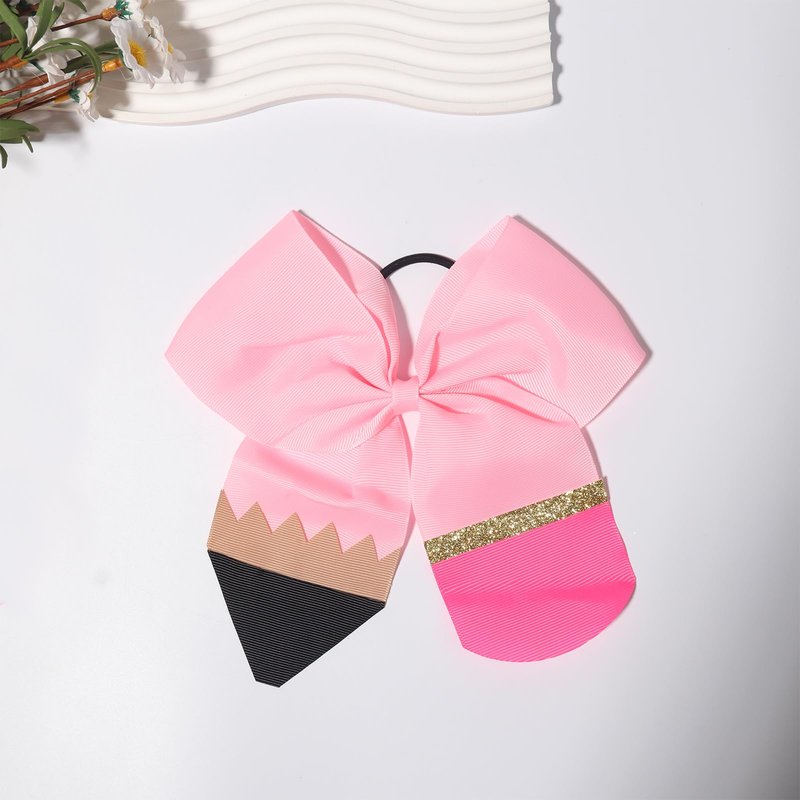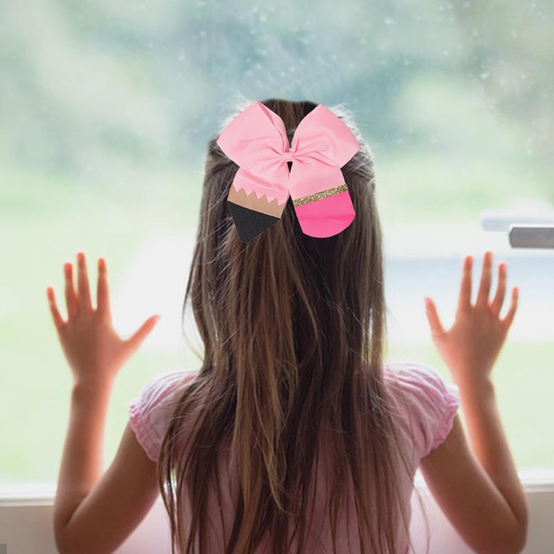 The back to school theme of the girl's hair bow ties are mainly pink,they are based on the classic bow, and the clever incorporation of pencil element makes the scrunchies both elegant and vibrant,completely meet the aesthetic needs of girls and make them fond for it.
