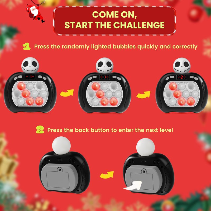 - 【Play Anytime Anywhere】 Our quick push pop game is lightweight and can be played anytime, anywhere. It can be used for parties, outings, walks, home games, and puzzle games without charging. It can be used with just 3 AAA batteries, which is very convenient and fun.