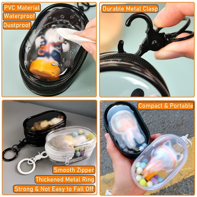 - HIGH QUALITY MATERIALS: This mini figure organizer is made of transparent PVC material, while the keychain and zipper are both made of metal with anti-rust coating, sturdy and durable, waterproof and dustproof, can well prevent the collectibles from being dirty